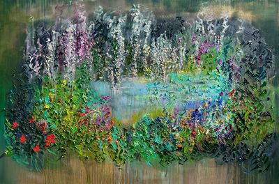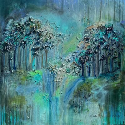 I have vivid childhood memories of stepping into my sparse, dry garden and imagining it transforming into a magical hidden haven, filled with butterflies, a lily pond, and vibrant blooms. I’d sing to myself, pretending to be a maiden awaiting her Prince Charming. Inspired by the beauty of nature, bringing this vision to life on canvas felt effortless. I loved every moment of the process and am truly pleased with how it turned out.